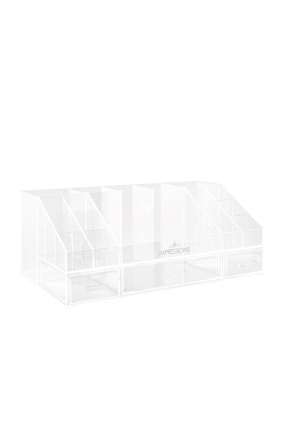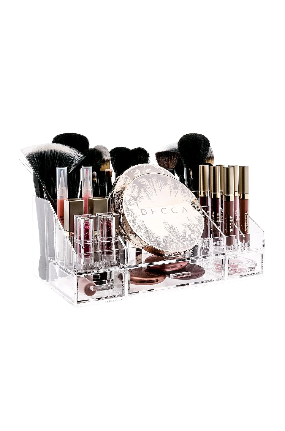 Get organized while showing off your makeup collection with the Impressions Vanity Brush and Makeup Organizer Tray. Made from high-quality lucite acrylic, this versatile organizer will keep all of your products in one beautiful place.