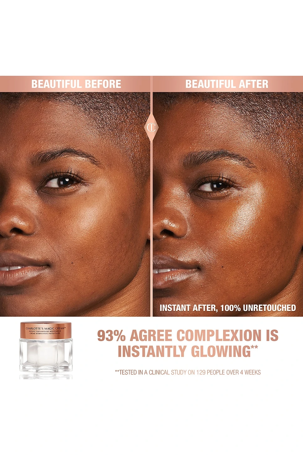 Meet the product that started it all. Frustrated by moisturizers that didn’t provide a glowing base, Charlotte created her own to quickly transform model and celebrity skin. The formula floods skin with moisture, making it look plumper and smoother for a visible transformation rapidly and over time. This visibly age-defying moisturizer is formulated to plump the look of skin and diminish the look of wrinkles, leaving your complexion visibly glowing and prepped for flawless makeup. Hyaluronic Acid moisturizes skin’s outer layers for up to 24 hours for a softer, smoother, plumper look and feel. Vitamins C & E visibly brighten and even skin tone while fighting dullness. Bionymph Peptide Complex diminishes the appearance of wrinkles and visibly improves skin’s smoothness. Refill only – glass jar not included.