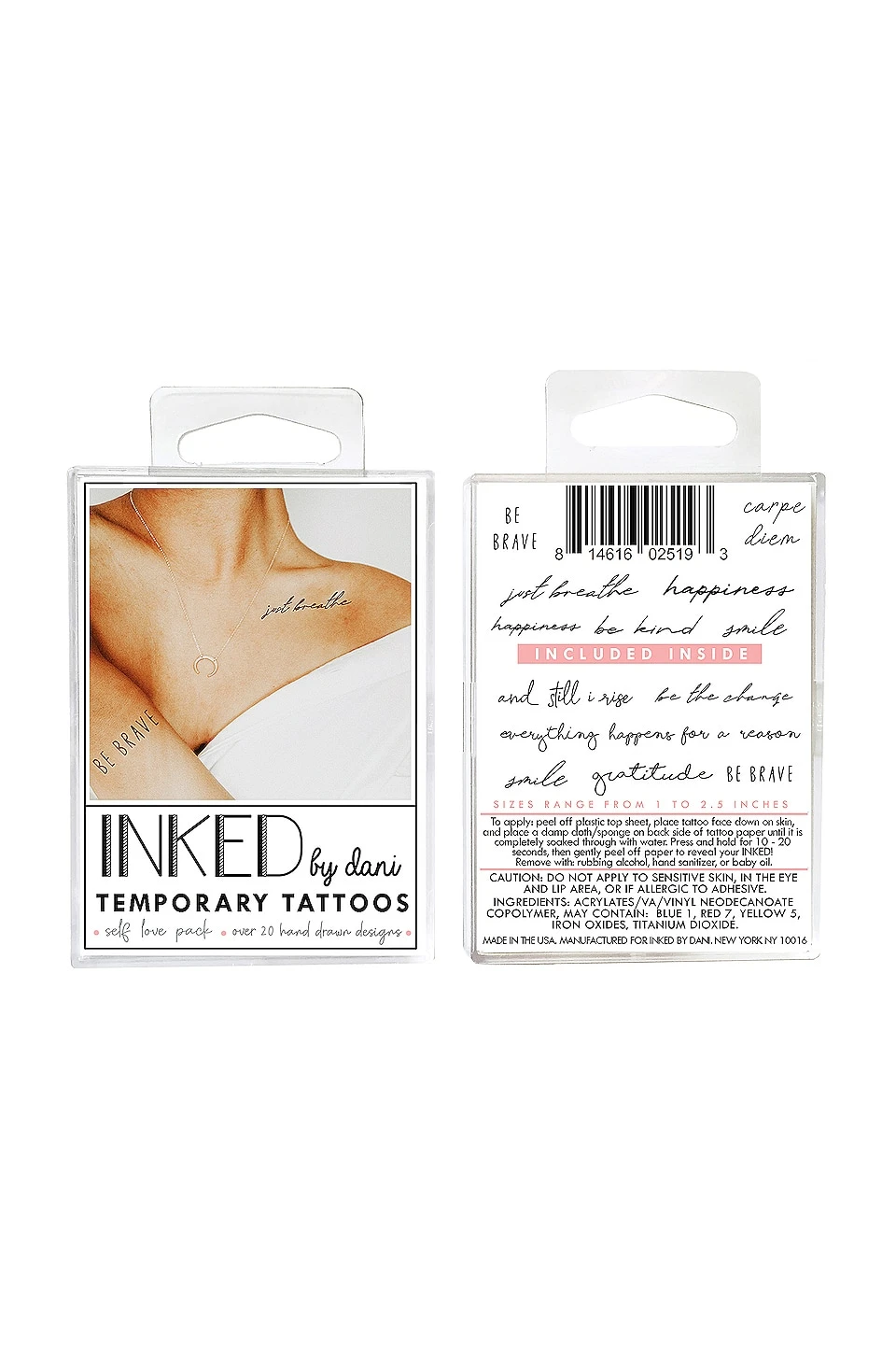 INKED by Dani temporary tattoos are here to let you test out your dream tattoo, without the commitment. This stunning new value set includes 3 best-selling tattoo packs, a mini spray bottle for water, and a sponge for application.