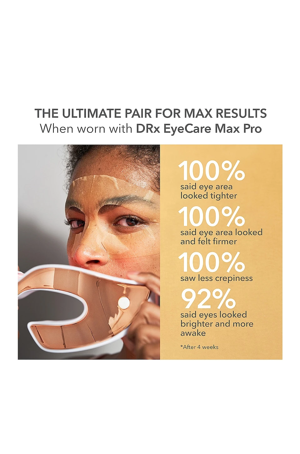 - On clean, dry skin align the mask to comfortably fit around the eye area and press firmly onto skin