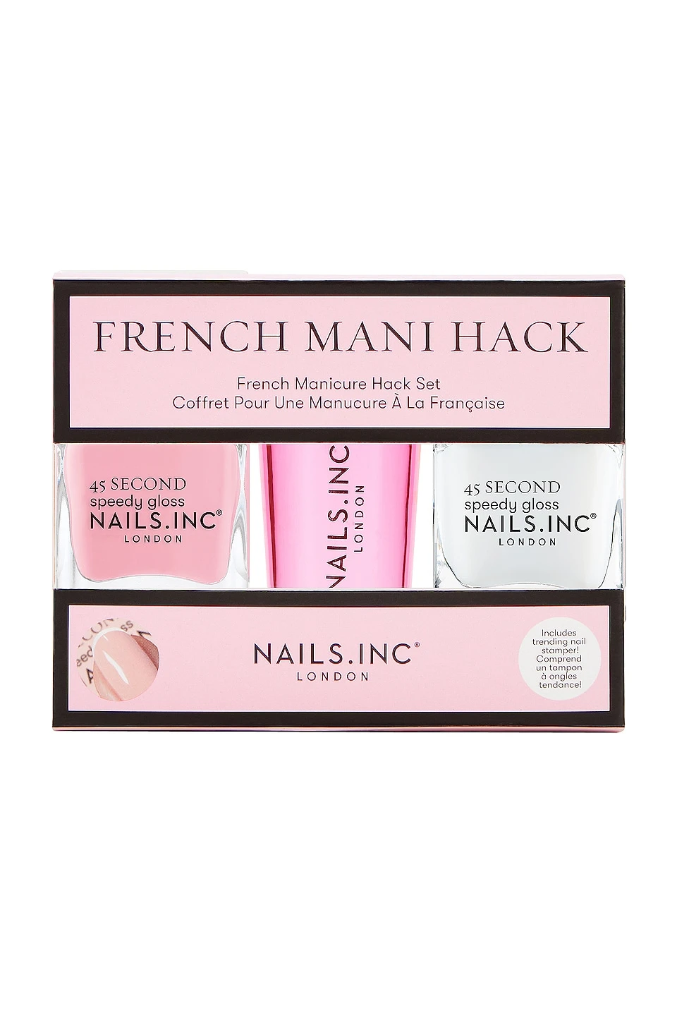 Trending tips, this way. Create a French manicure in minutes with this tool kit. We’ve included two essential 45 Second Speedy gloss shades, plus a silicone tip tool to create the easiest French tips – all you have to do is dip each nail.