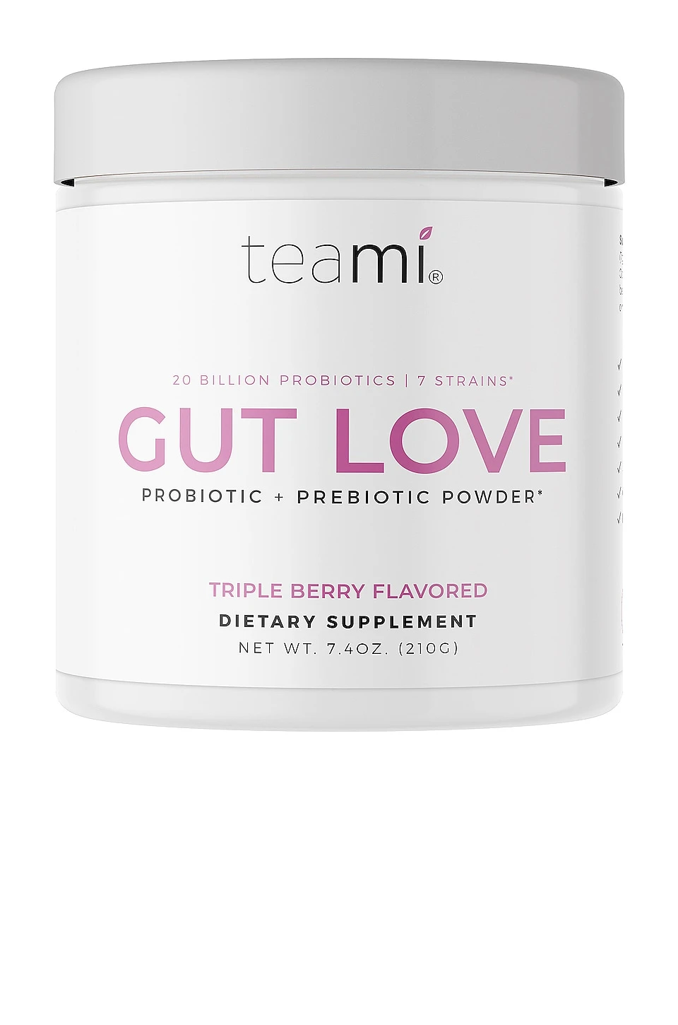 Teami Gut Love is a shelf-stable probiotics + prebiotics supplement to support belly balance, gut health, and overall inner wellness. Probiotics are living microorganisms – known as “beneficial bacteria” – that support regular digestion, feelings of bloat, and promote well-being from the inside out. Stress, lack of nutrition, physical inactivity, and alcohol can throw the gut microbiome out of balance. Adding a daily probiotic prebiotic supplement to your wellness routine is a great way to actively invest in your gut health.