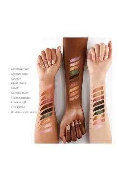 - Metallic, glitter, and chromatic finishes can be applied with a brush or pressed onto the center of the lid or brow bone with a finger.