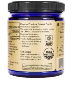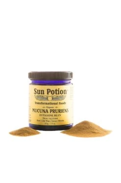 The Dopamine Bean Mucuna Pruriens Organic Bean Extract Powder by Sun Potion may help to enhance brain function, elevate mood & refine the senses, soothe the nervous system, and support overall well-being. Mucuna Pruriens contains 15% L-DOPA, a precursor to dopamine. Higher levels of dopamine have been linked with sound sleep and an expanded sense of well-being.
