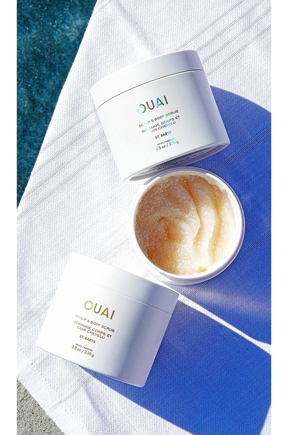 Wanna get-a-OUAI? This deep-cleansing sugar scrub exfoliates product buildup from your scalp and smoothes out dry skin, all while nourishing. Featuring our St. Barts scent for a one-OUAI trip to the tropics.