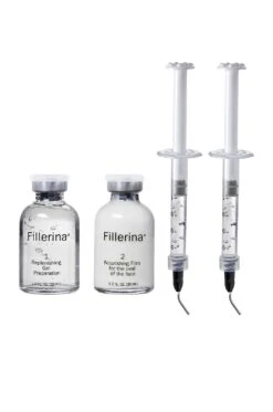 Bid farewell to fine lines and deep furrows with Fillerina’s Dermo Replenishing Filler Treatment. This topical treatment blends eight different types of Hyaluronic Acid to plump up facial depressions and recover the skin’s former smoothness without invasive procedures. Phase 1 penetrates the skin’s deepest layers to decrease wrinkle depth and create volume in the cheekbones and lips, while Phase 2 leaves skin soft and nourished with skin-loving ingredients such as moisture-rich Vitamin E, Meadowfoam Seed Oil, and Shea Butter.