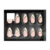 - Choose which of the 12 sizes work best for your hands and nails. Moving from thumb to pinky, apply a small dot of glue to the base of the tip and the finger nail.