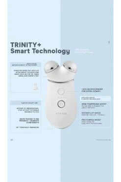 Shape your face in just minutes with the clinically-proven, FDA-Cleared Trinity+ Facial Toning Device. The NuFACE Smart-App allows you to access professional step-by-step tutorials tailored to you, see progress with selfies and celebrate achievements, and set custom reminders to help you stay on track. This kit includes everything you need to shape the future of your skin-2 months worth of Aqua Gel and Silk Crme Activators, plus the Clean Sweep Application Brush.