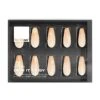 - Choose which of the 12 sizes work best for your hands and nails. Moving from thumb to pinky, apply a small dot of glue to the base of the tip and the finger nail.