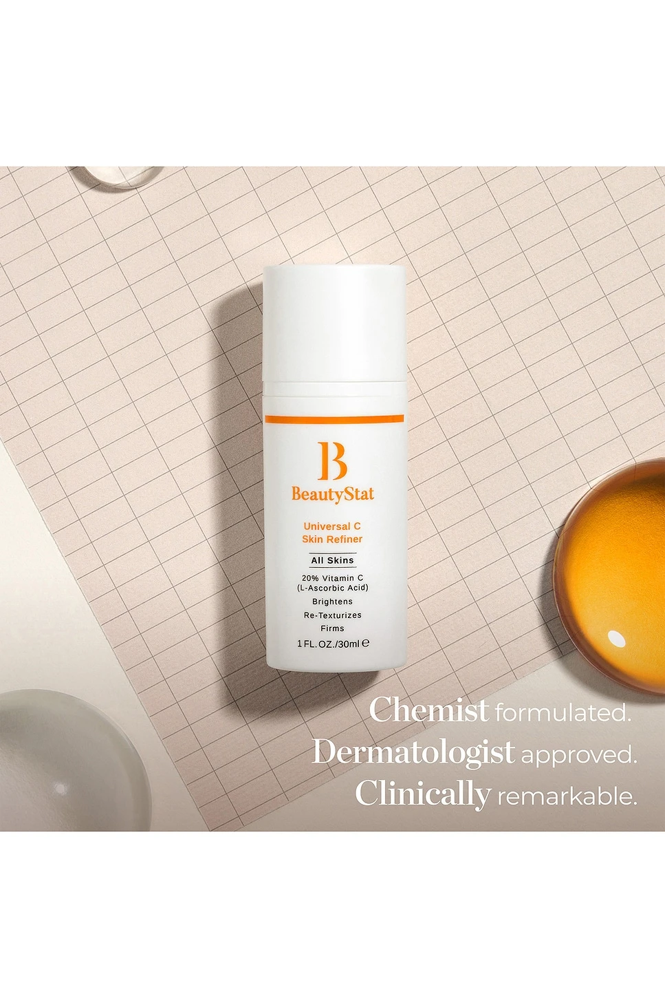 Prepare to be amazed. The Universal C Skin Refiner by BeautyStat is the ultimate age-defying treatment that performs like no other Vitamin C product anywhere. Formulated with 20% pure Vitamin C (L Ascorbic Acid), its patented, encapsulated delivery system works its magical full-strength results from first pump to last with no degrading of color or formula. This lightweight gel cream immediately provides smoother, silkier, more radiant pore-less looking skin. Over time, fine lines, wrinkles, redness and dark spots are visibly reduced, and skin tone and texture become more even and firm. All of this adds up to a radiant, glowing, and healthy-looking skin.