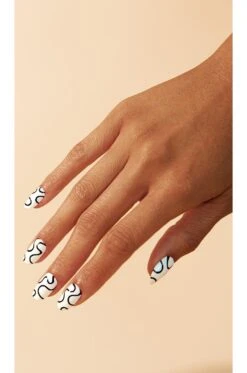 A modern press-on nail from the authority in modern self-care. Chill Tips are salon-quality nail art that you can do in your home, with no mess, no wait time, and no smudges so you have more me-time. Made with high-quality materials that are comfortable and fully customizable to your nail, using included tools, yet feel no heavier on nails than a classic gel mani. Wavy Baby is an edgy black and white design for the colorful creative. The adventurous pattern is mesmerizing from near or far and is sure to lengthen the look of your nail from any angle.