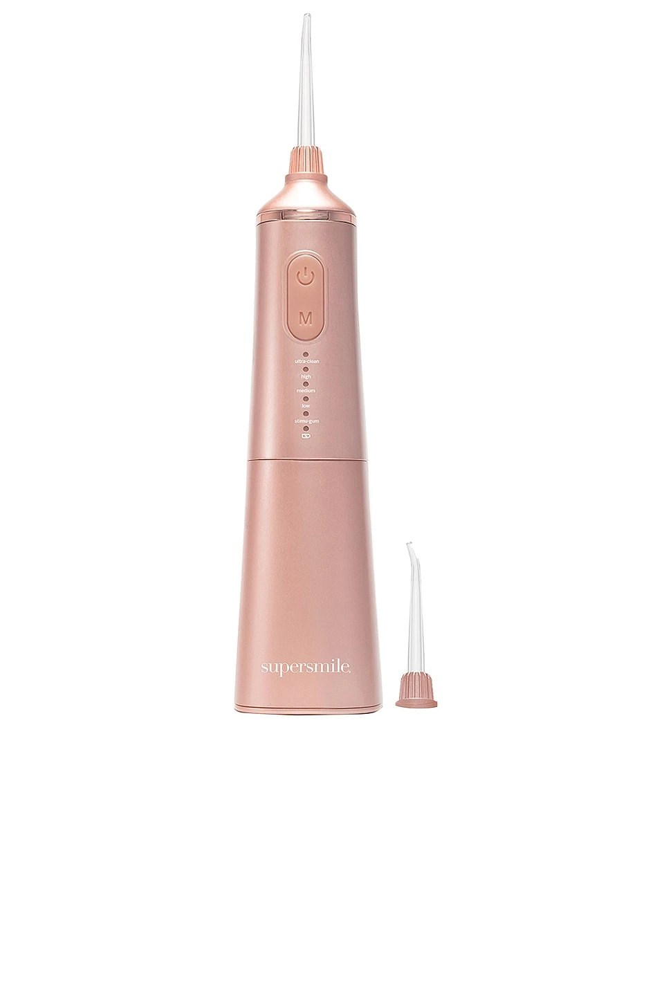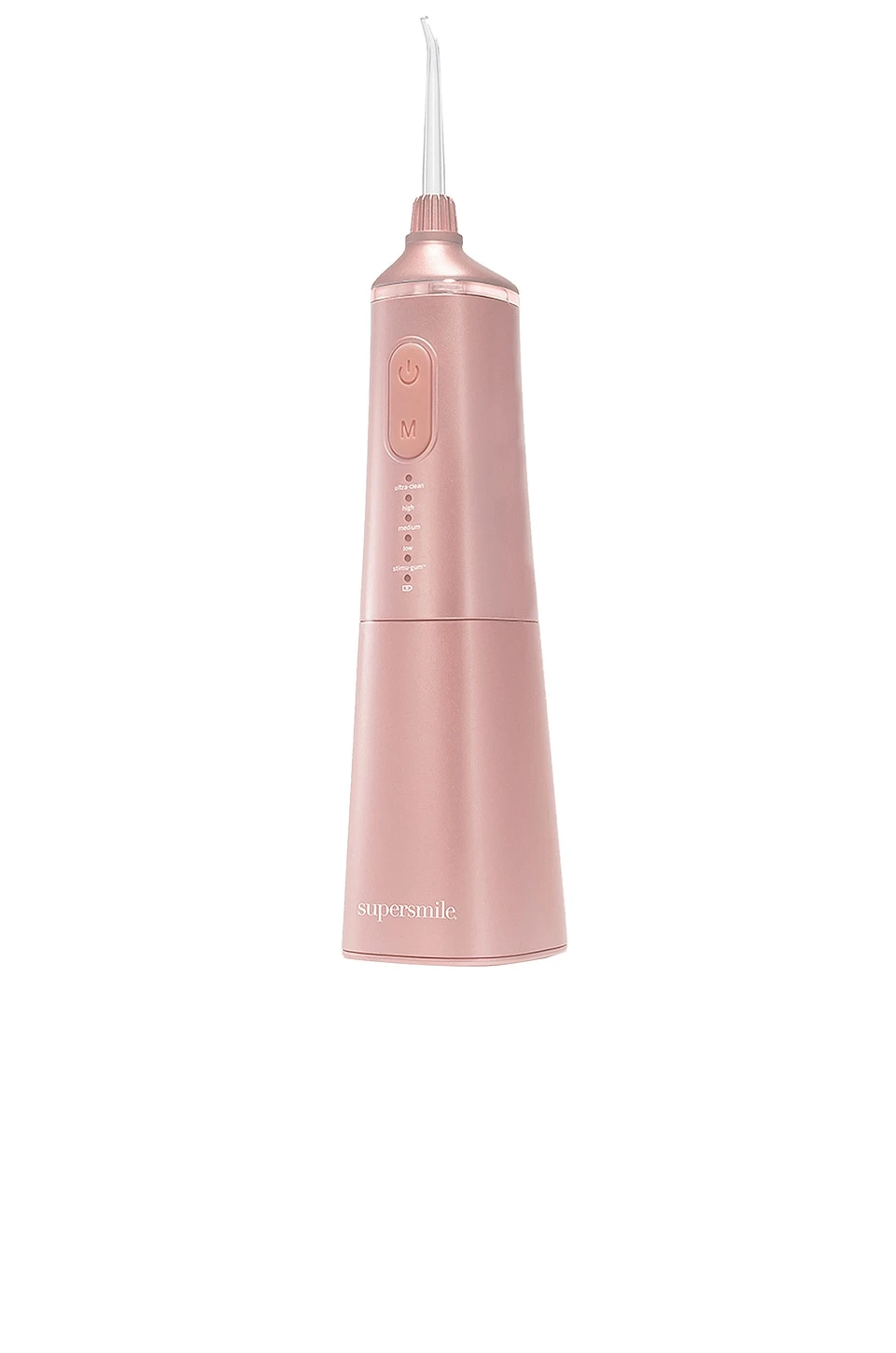 Elevate your flossing routine. Supersmile’s Zina Water Flosser helps improve gum health by removing particles, plaque + bacteria from between the teeth and under the gumline better than manual flossing. Convenient for use at home or when traveling, this water flosser features 360-degree tip rotation and 60-seconds of water capacity to reach and clean your entire mouth.